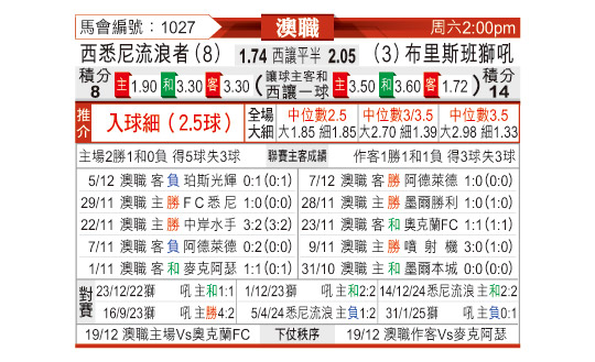 [澳超] 西悉尼流浪者vs布里斯班狮吼